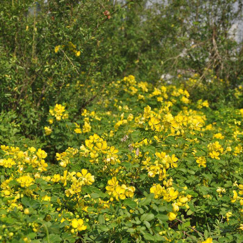 鮮黃色,開(kāi)在樹梢,遠看去,鮮豔奪目,又開(kāi)在花少的8月至12月,因而受到園林綠化部門重視,近年引種(zhǒng)作爲花灌木栽培,專供觀賞。