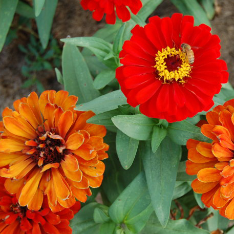 百日菊(學(xué)名:Zinnia elegans Jacq.):一年生草本。莖直立,高30-100厘米,被糙毛或長(cháng)硬毛。葉寬卵圓形或長(cháng)圓狀橢圓形,兩(liǎng)面(miàn)粗糙,下面(miàn)被密的短糙毛,基出三脈。頭狀花序單生枝端,總苞寬鍾狀;總苞片多層,寬卵形或卵狀橢圓形。舌狀花深紅色、玫瑰色、紫堇色或白色,舌片倒卵圓形,先端2-3齒裂或全緣,上面(miàn)被短毛,下面(miàn)被長(cháng)柔毛。管狀花黃色或橙色,先端裂片卵狀披針形,上面(miàn)被黃褐色密茸毛。雌花瘦果倒卵圓形,管狀花瘦果倒卵狀楔形。花期6-9月,果期7-10月。