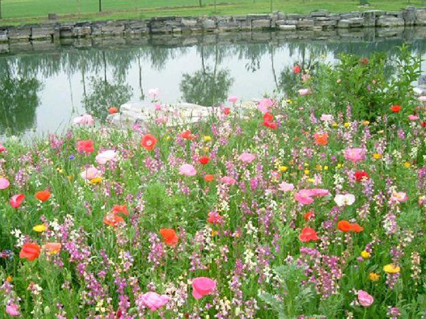 栽種(zhǒng)野花組合具有省工省時(shí)、景觀效果好(hǎo)的特點。野花需水量比草坪草少,管理又比盆花省事(shì),是草坪草、盆花很好(hǎo)的替代品。給設計工程人員算筆賬:野花組合播種(zhǒng)量爲6至8公斤/公頃,每平方米約需費用0.6元,它對(duì)土壤的要求比冷季型草坪低得多,管理又比較粗放,雖然成(chéng)本降低了,但綠化效果極佳。